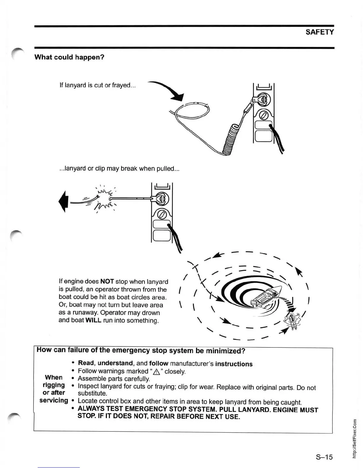 If engine does NOT stop when lanyard
