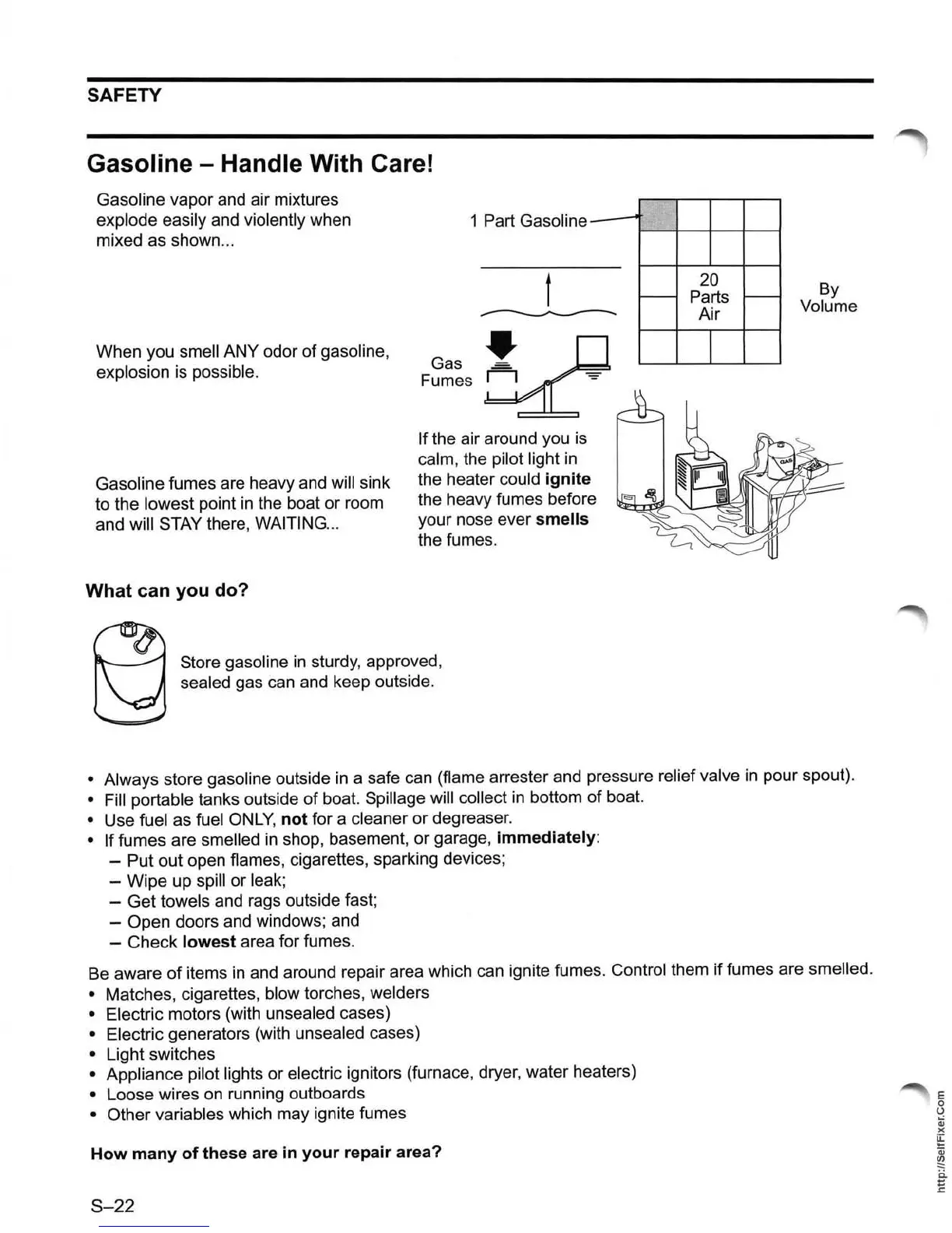and around repair area which can ignite fumes. Control them if fumes are smelled.