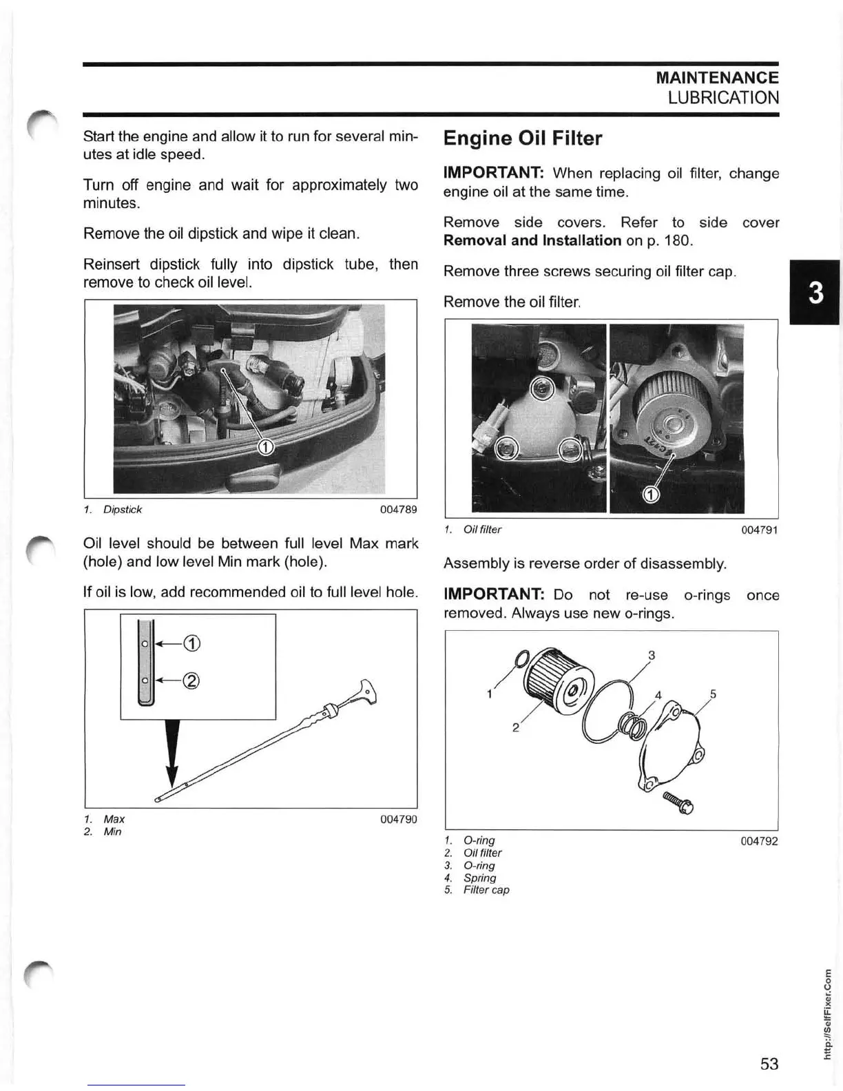 Reinsert dipstick fully into dipstick tube, then Remove three screws securing oil filter cap.