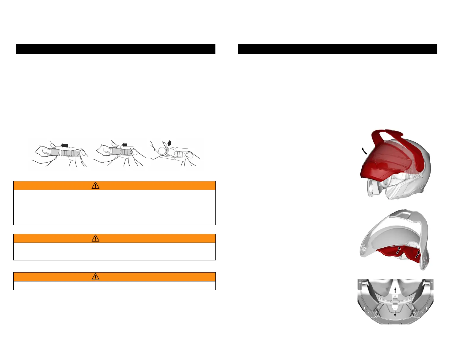 uncomfortably around your chin. To open the chinstrap, pull the red ribbon