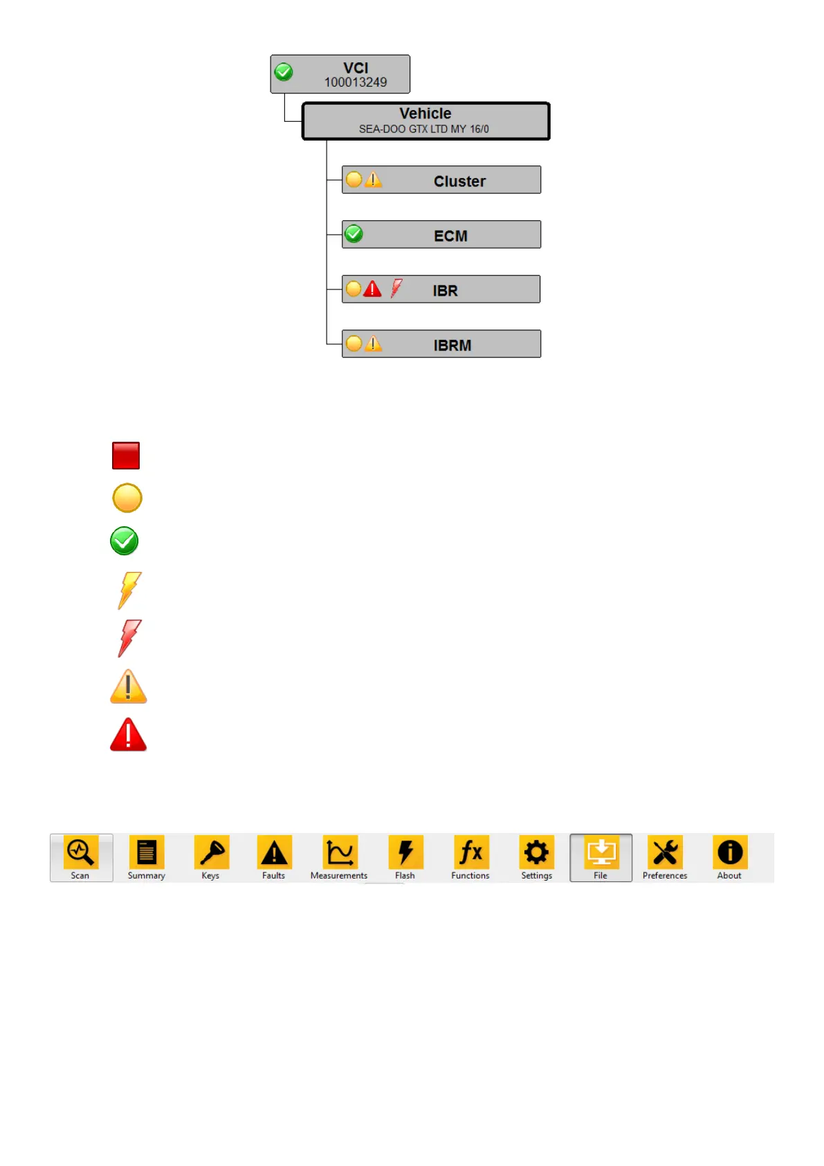To scan a vehicle connected via the VCI, select ‘Scan’ in the toolbar. A progress dialog shows you the