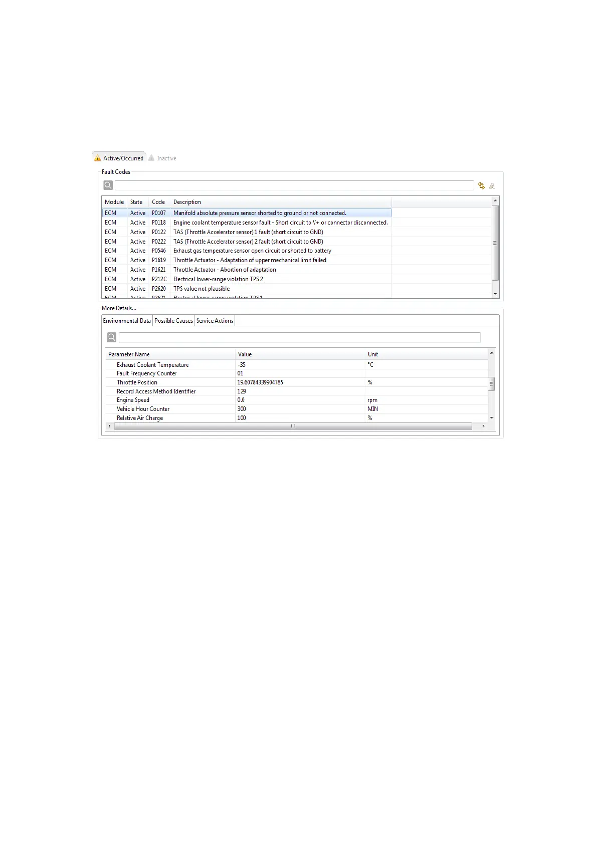 The status of the vehicle when the fault occurred is shown (i. e. speed, ignition angle, ...).