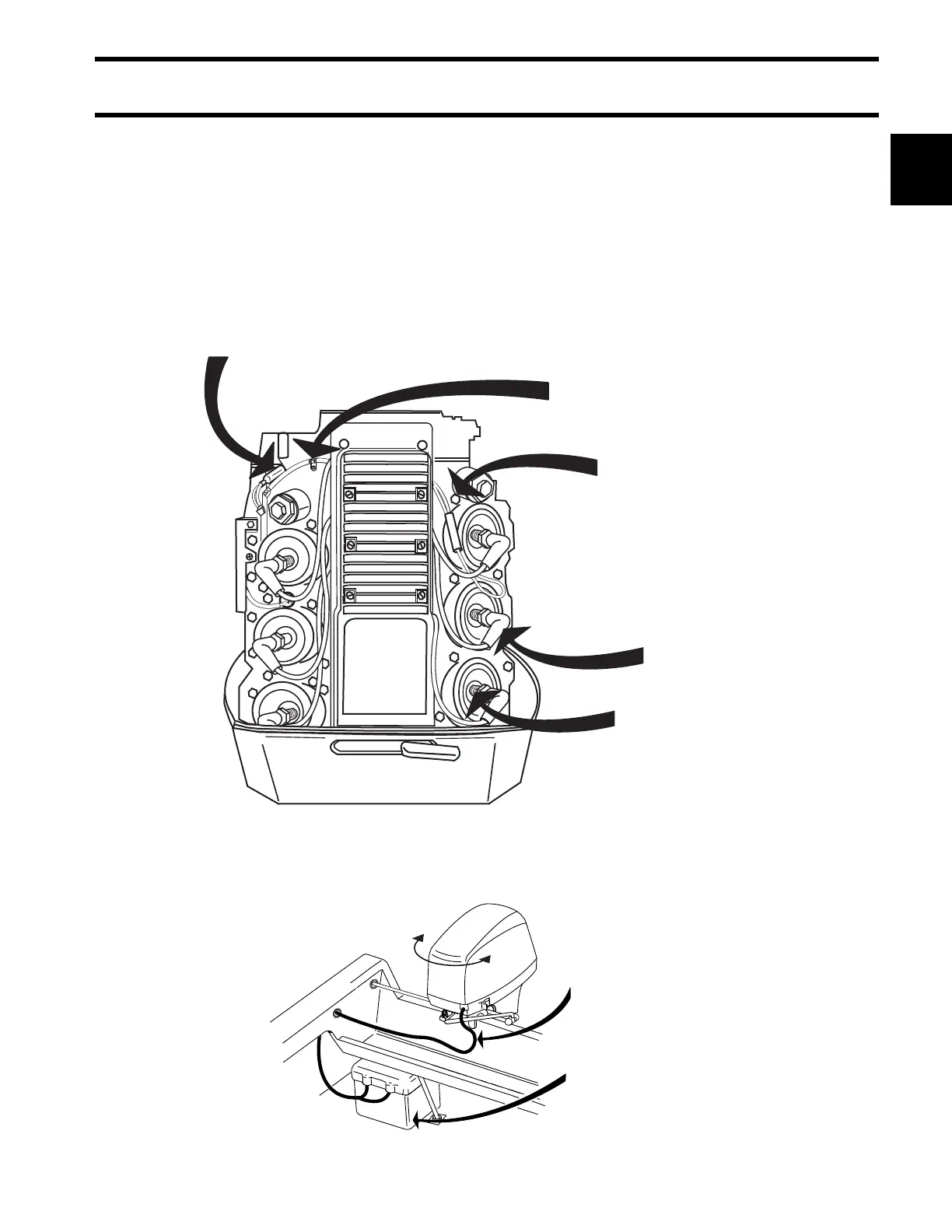 • Away from engine cover latches which can catch and cut insulation from high voltage spark plug leads