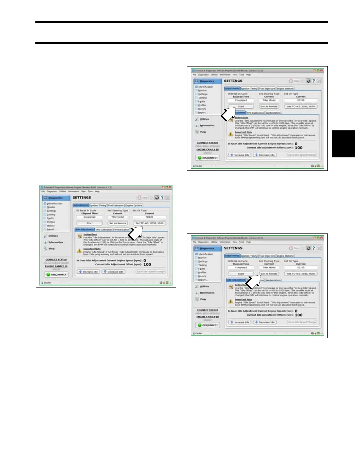 Use the diagnostics software to start break-in oil-