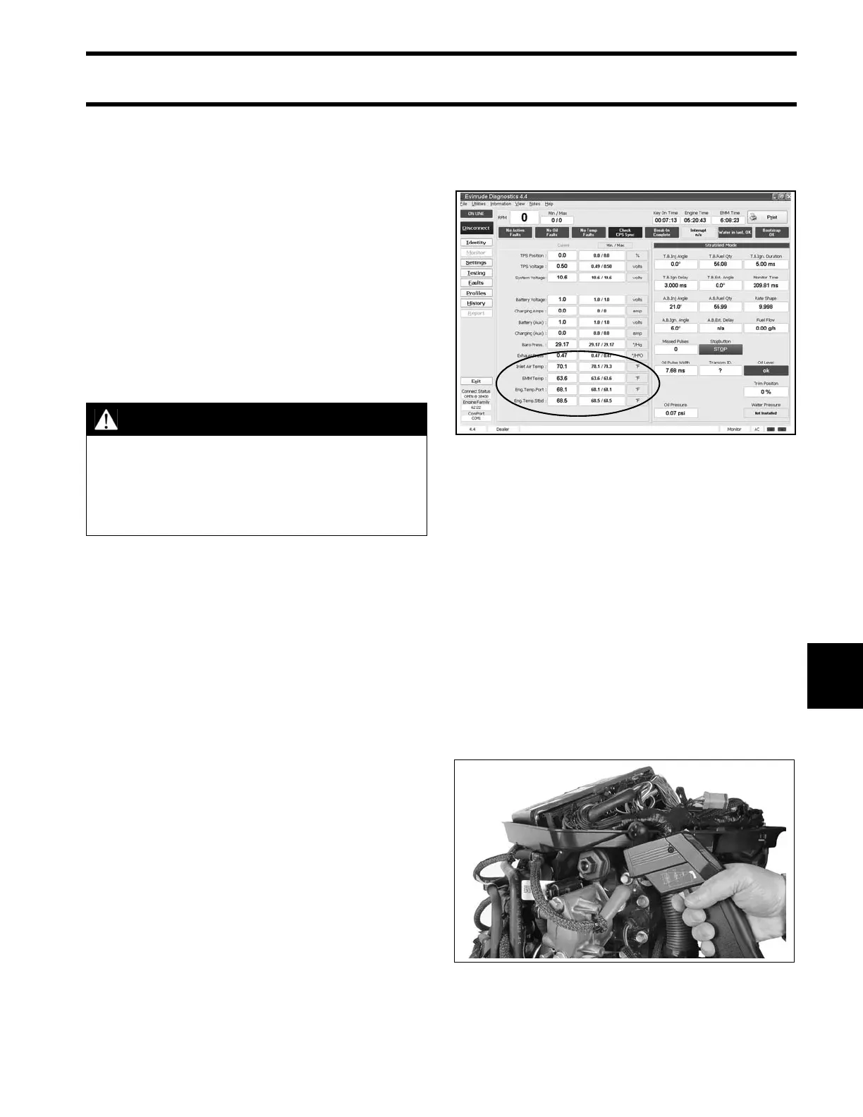 Use Evinrude Diagnostics software to read tem-