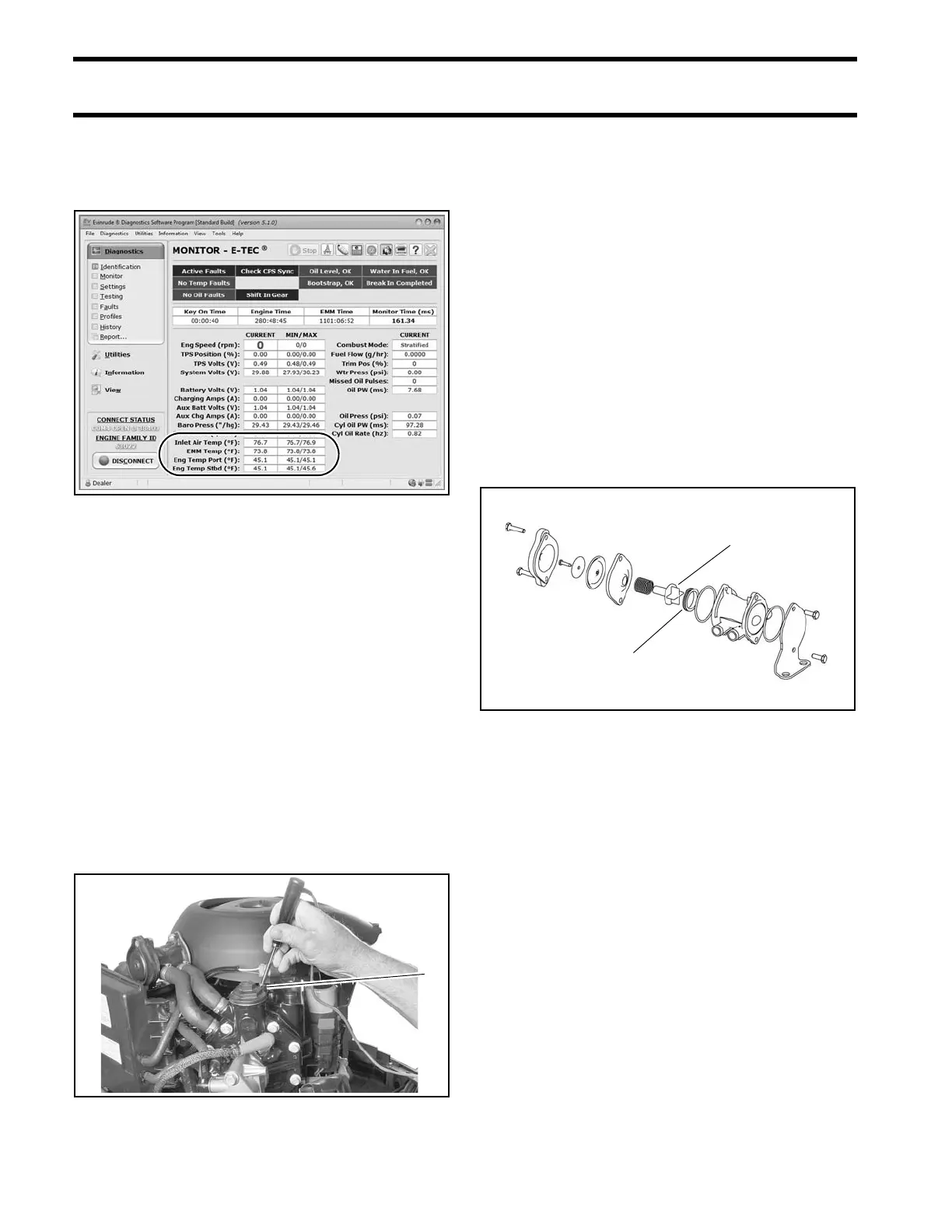 BRP EVINRUDE E-TEC 225 - Idle Operating Temperature Troubleshooting (below Range); Pyrometer Method; Software Method