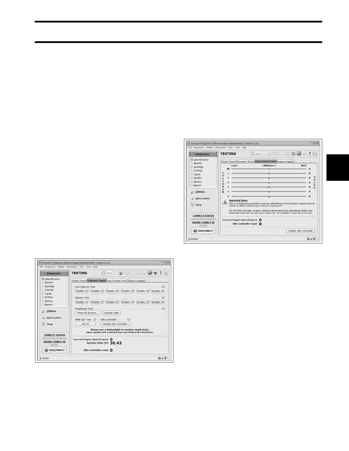 Evinrude Diagnostics software a llows temporary