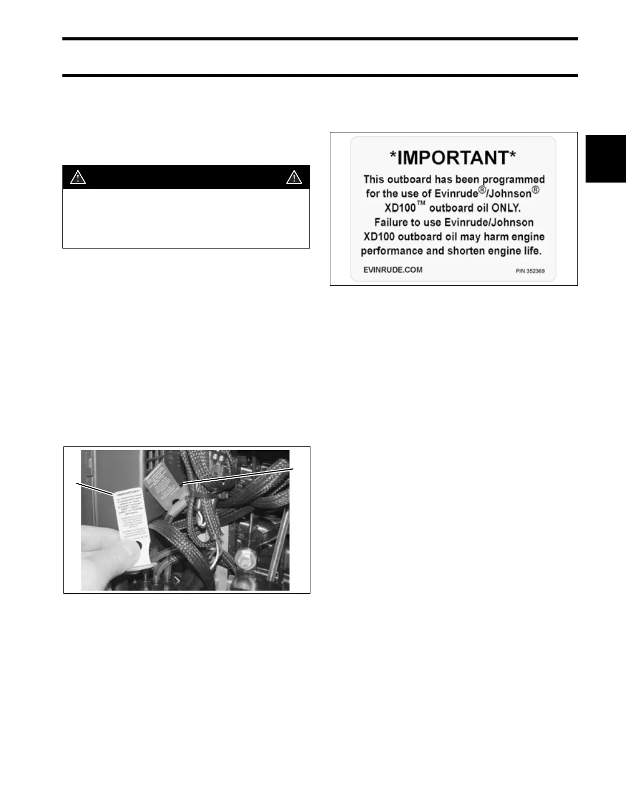 Use the XD100 Outboard Oil Decal, P/N 352369,