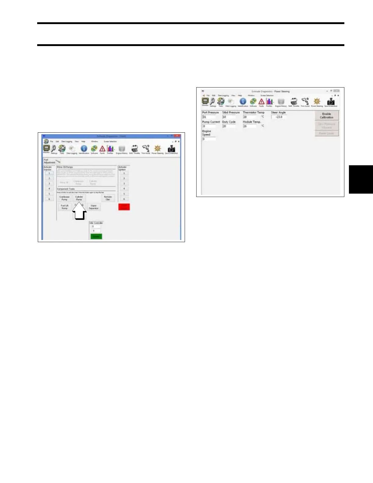 Use the Power Steering screen of Evinrude Diag-