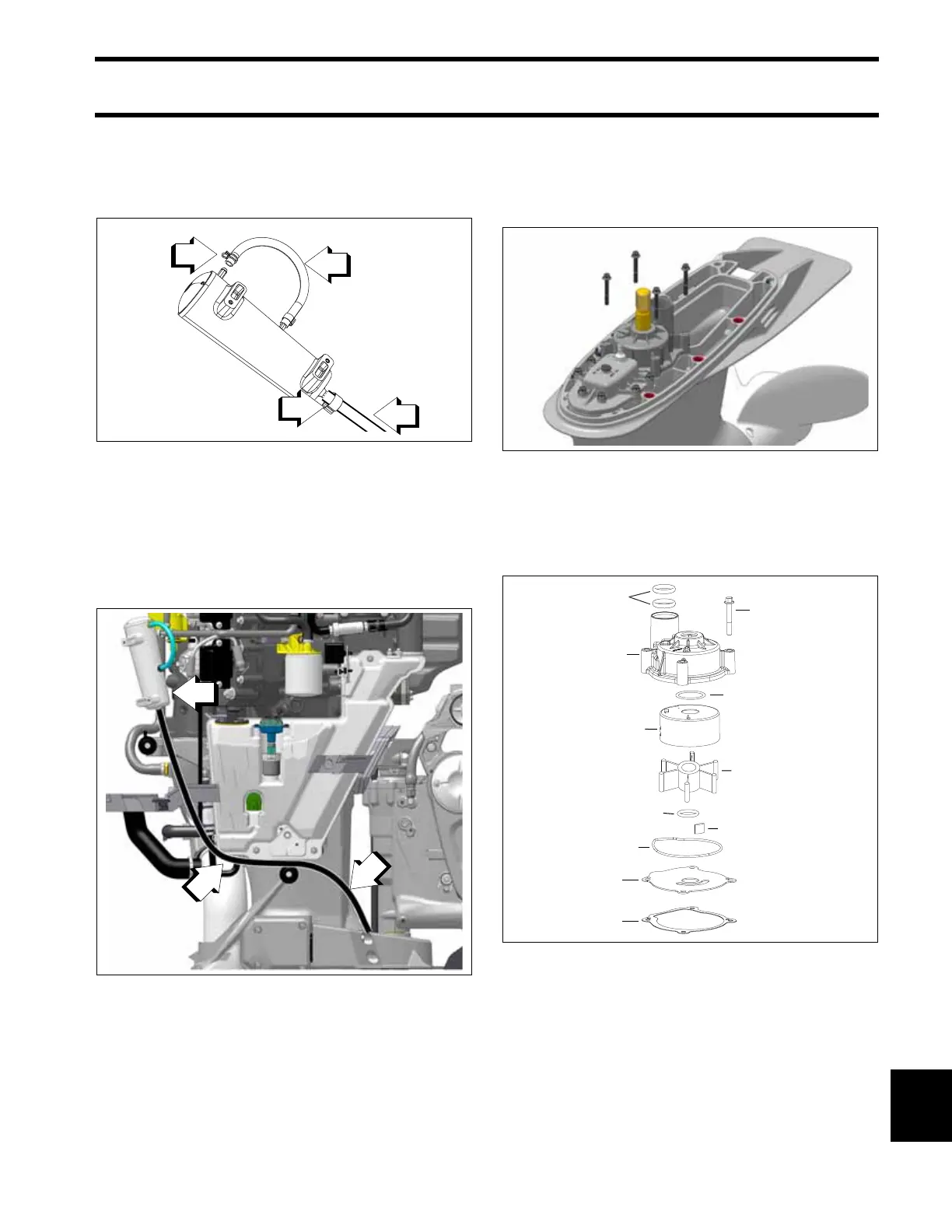 Route the oil reservoir hose from the gearcase to