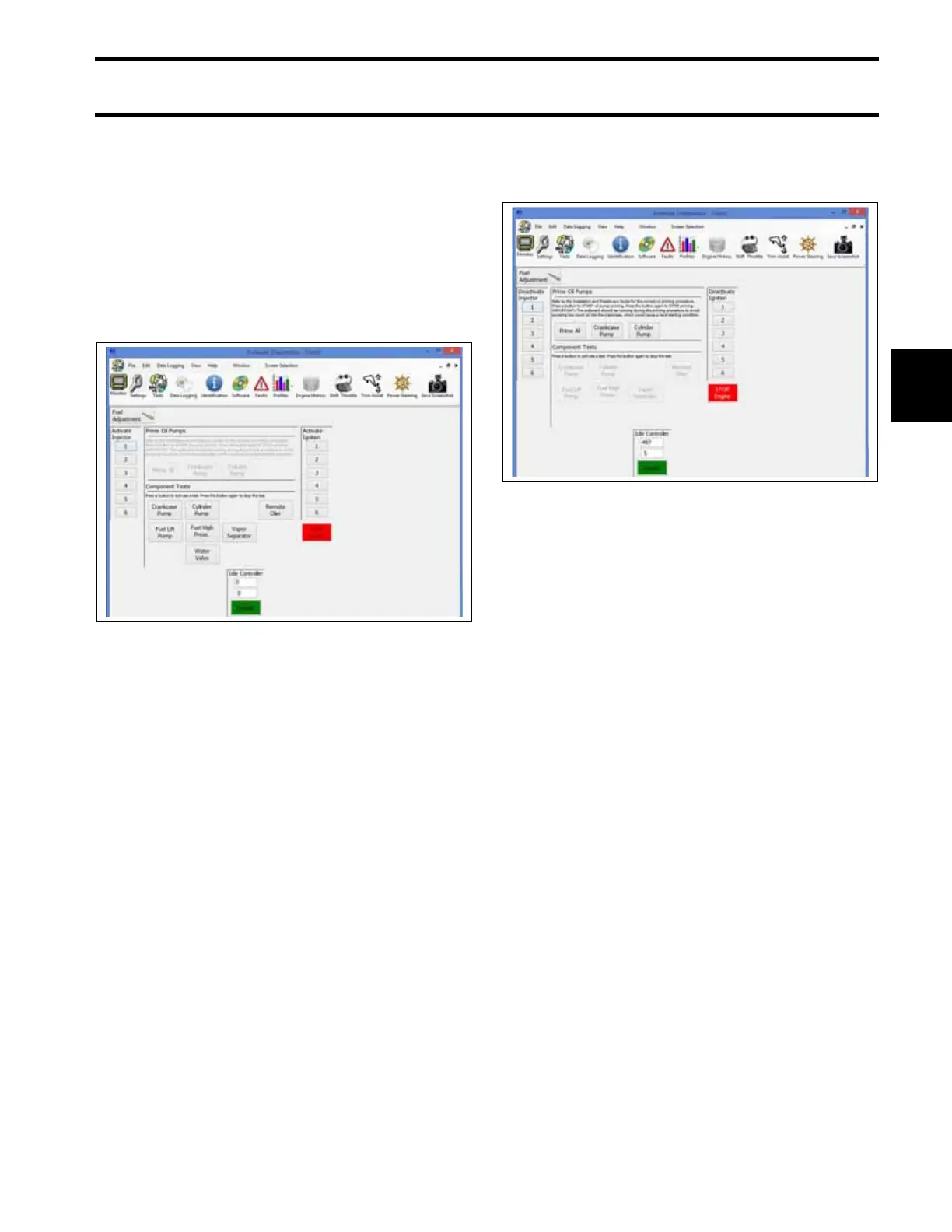 This test is used to cycle the oil injection pump for