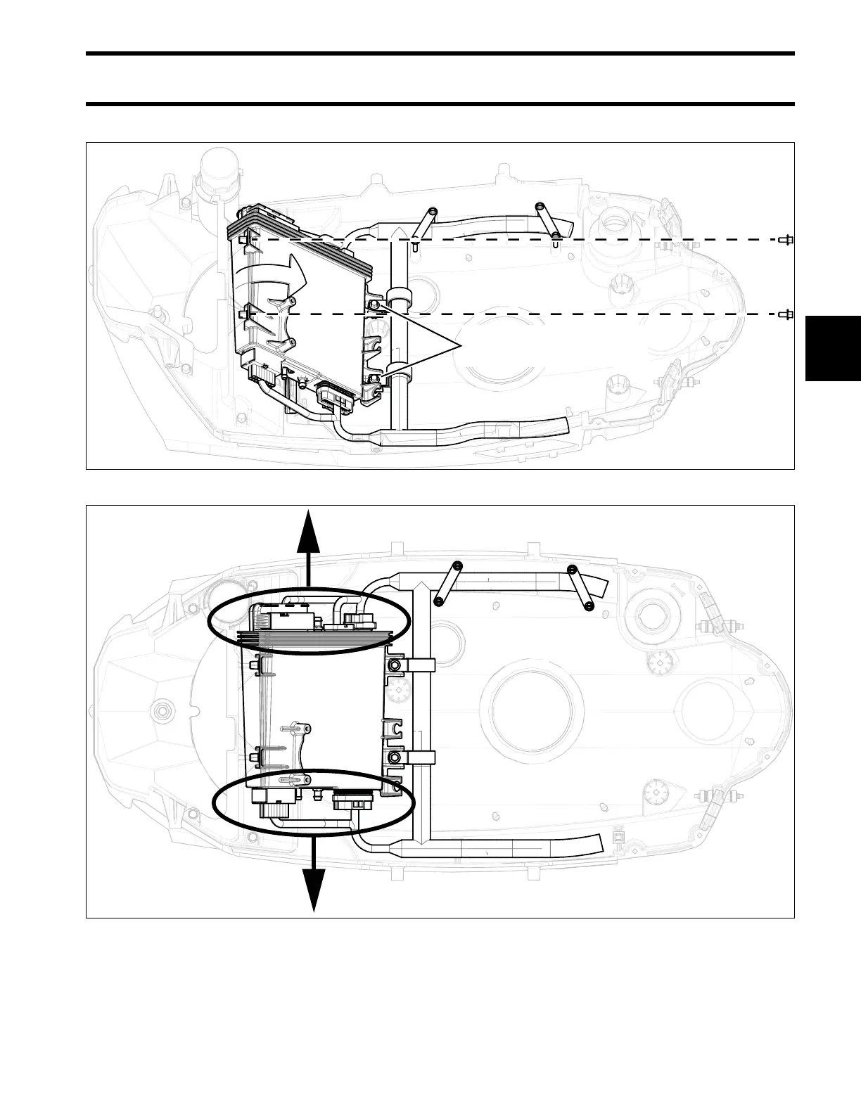Remove EMM mounting screws (2X). Rotate EMM away from frame as shown.
