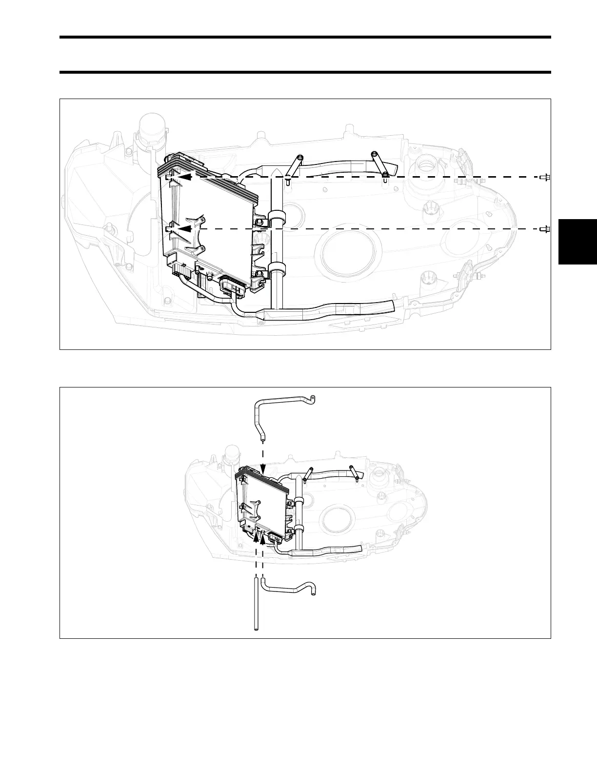 Install exhaust pressure hose and water cooling hoses. Secure each hose with one 15.7 mm Oetiker
