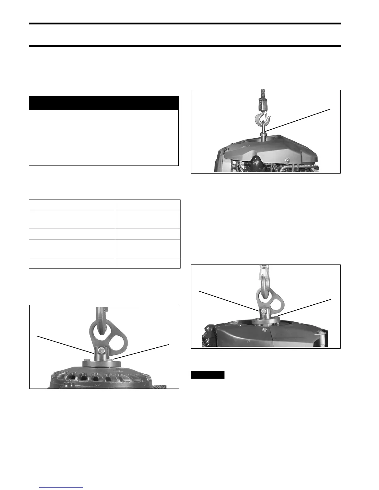 DO NOT allow the lift hook or chain from