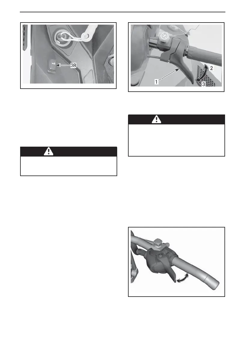 of the snowmobile. As the handlebar