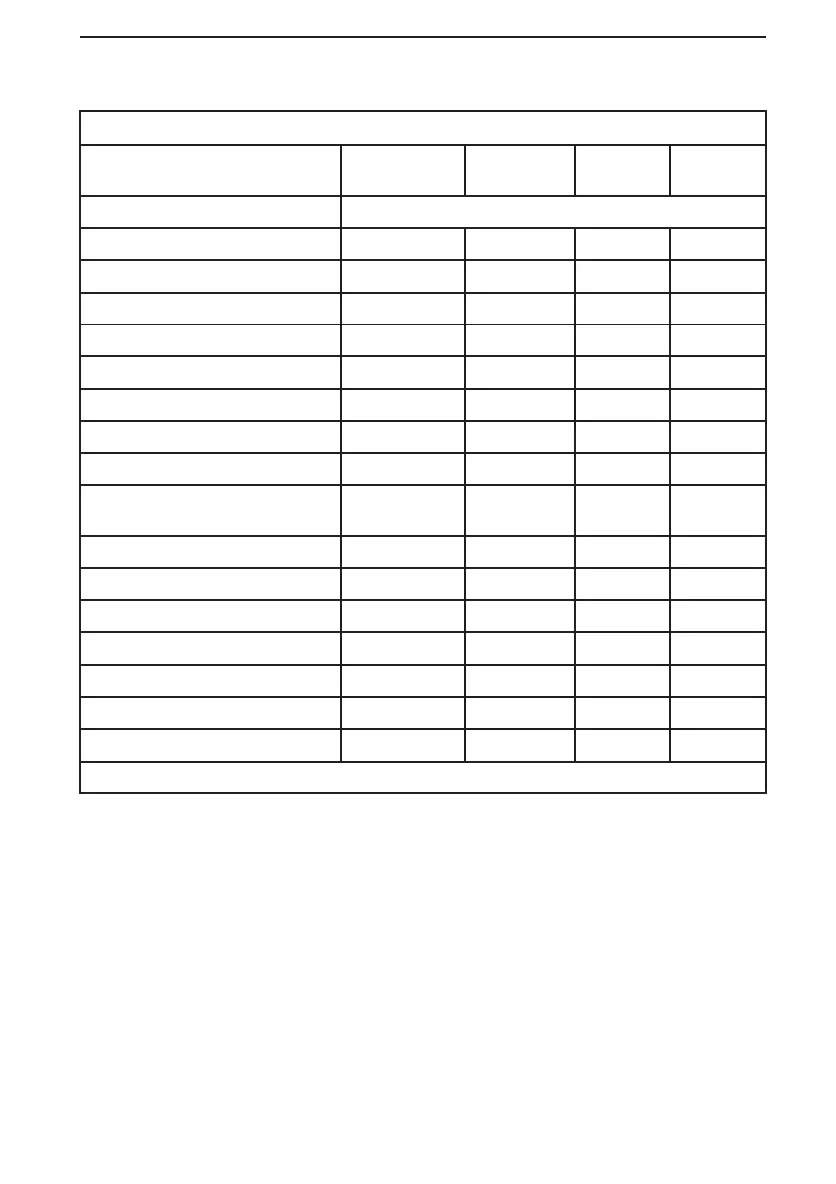X = An X indicates a standard feature, Opt = Feature available as an option, N.A. = N ot available