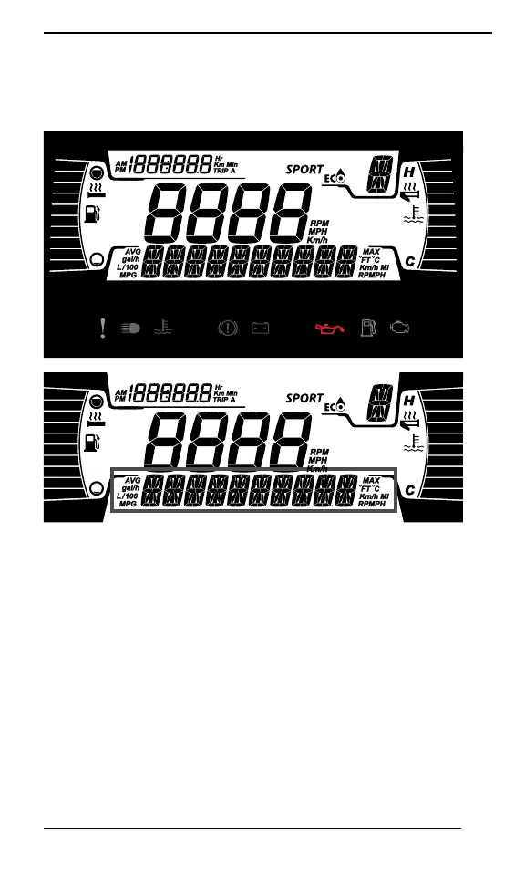 When the SPEED display is chosen, the RPM is shown in the TRIP