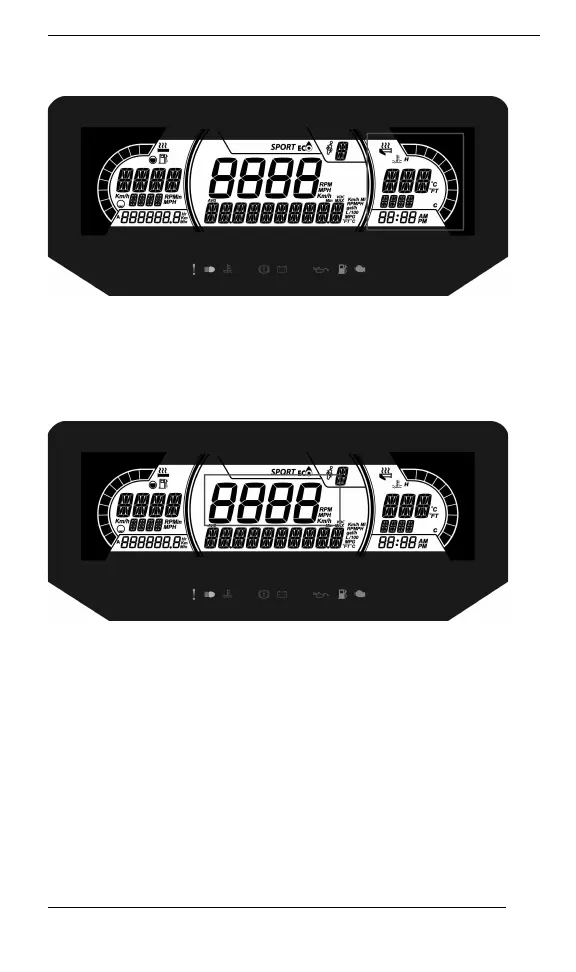 Display the vehicle speed in Km/h (or MPH) or the RPMs. Refer to