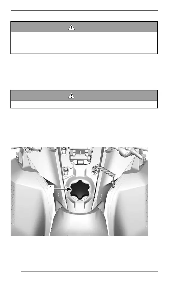 Do not sit or lean on seat when fuel tank cap is not properly installed.