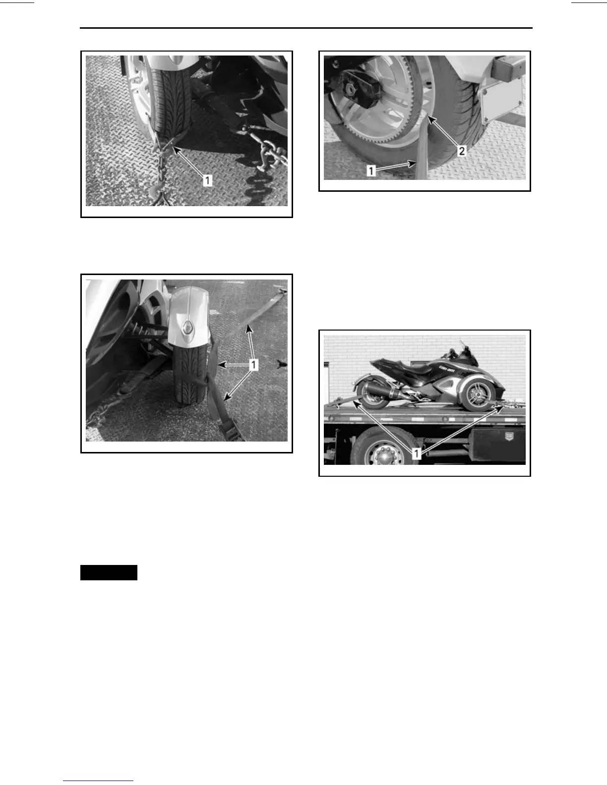 1. Strap around the rim of each front wheel