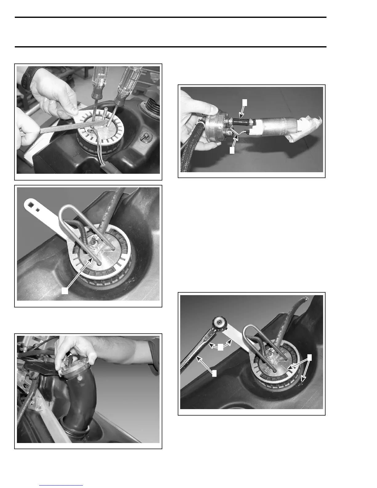 one on fuel tank. Keep arrows aligned when tight-