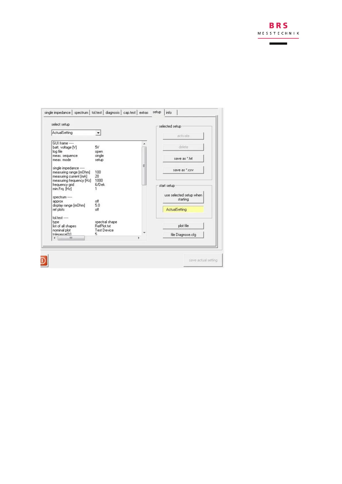 Additionally, the actual set-up can be stored by pressing the button “save actual set-