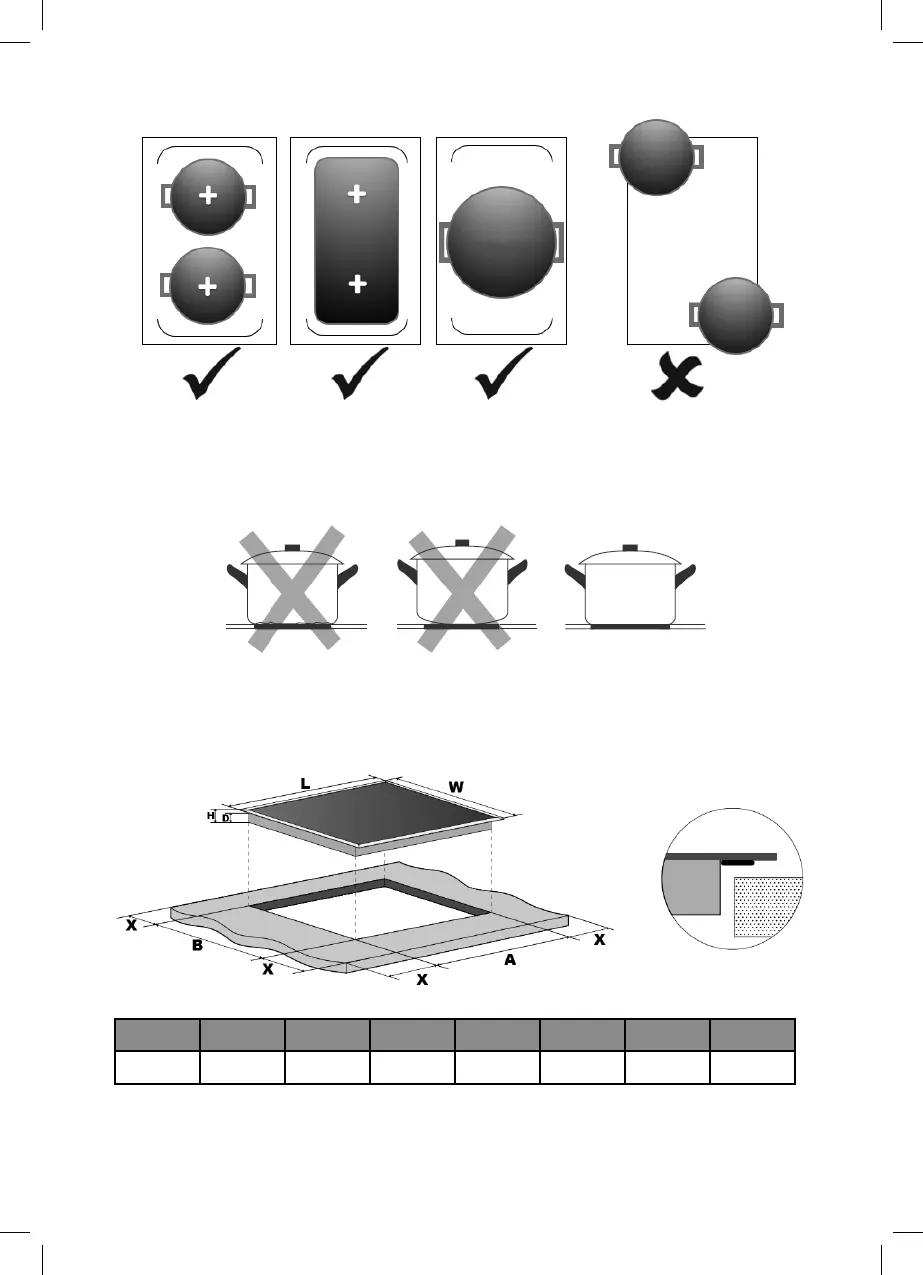 Modelo L (mm) W (mm) H (mm) D (mm) A (mm) B (mm) X (mm)
