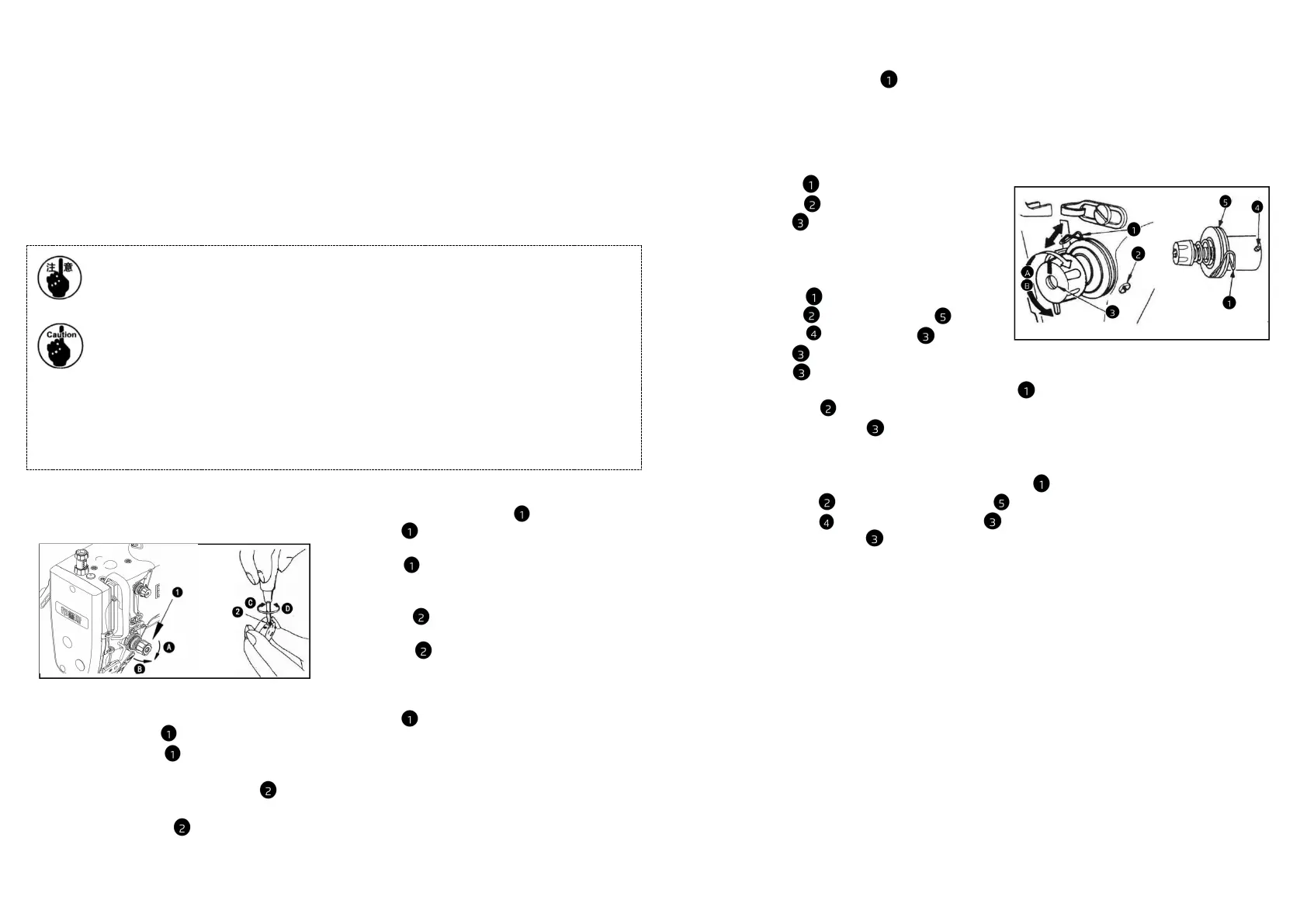 2)As you rurn screw counterclockwise(in direcrion D),the bobbin thread tension will decrease.