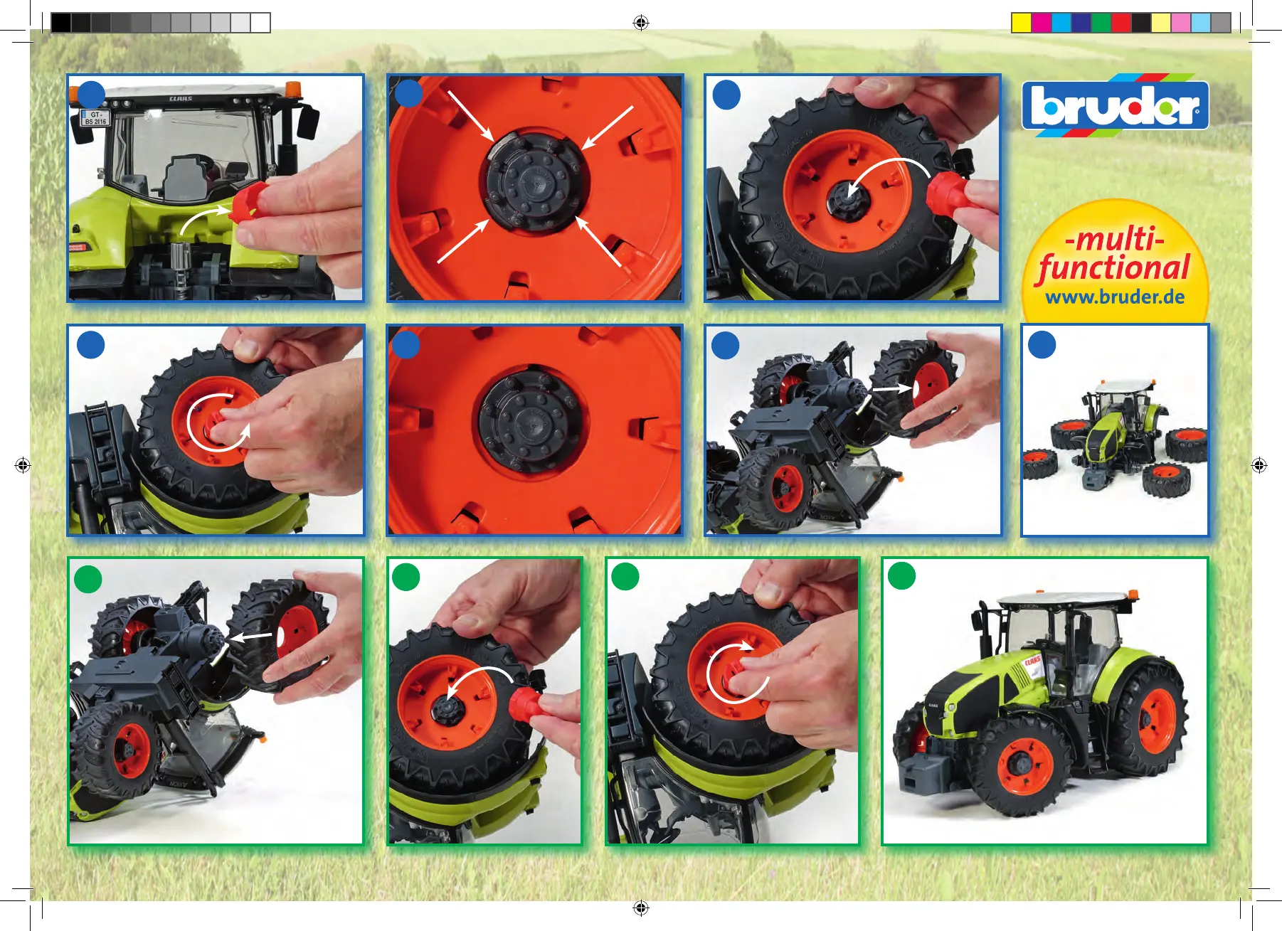 bruder 04040 - Tractor Wheel Assembly Instructions; Attaching Front Wheels; Attaching Rear Wheels