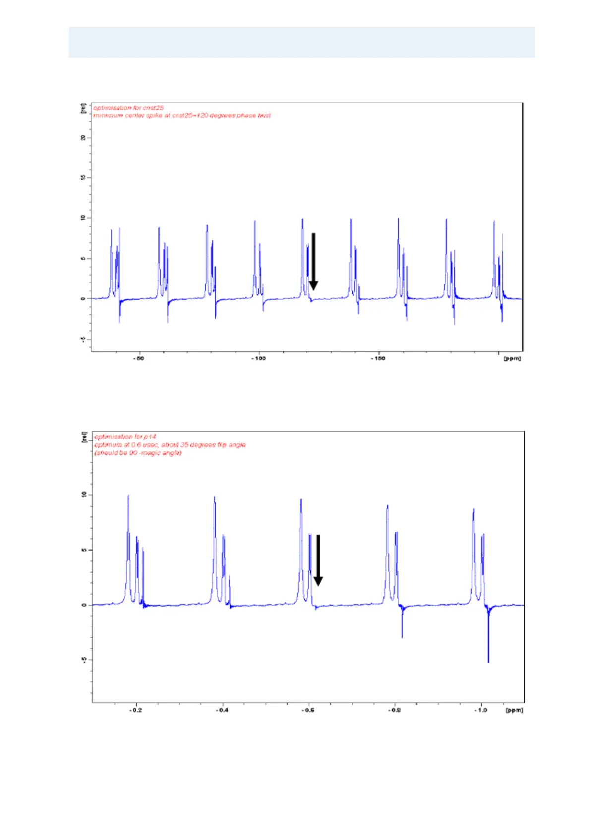 Bruker BioSpin Solid State NMR - Figure 22.7. Optimizing Cnst25 for Minimum Carrier Spike, Optimized at 120°C; Figure 22.8. Optimizing P14 for Minimum Carrier Spike, Optimized at 0.6 Μsec