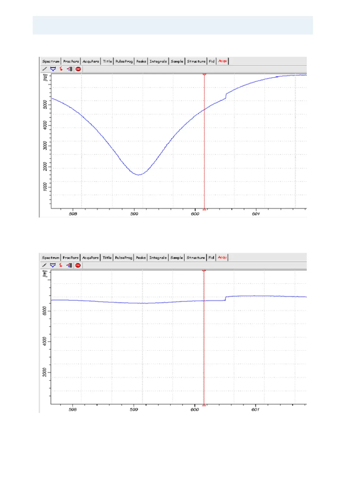 Bruker BioSpin Solid State NMR - Figure 4.7. Display Example of an Off-Matched and Off-Tuned Probe; Figure 4.8. Display Example Where Probe Is Tuned to a Different Frequency