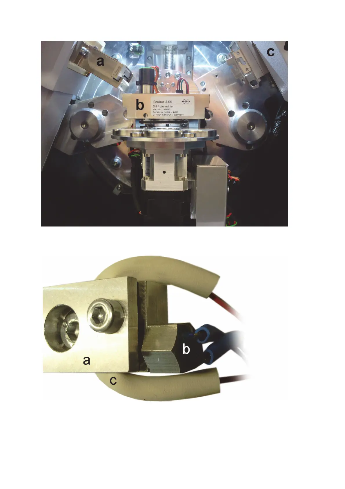 Fig. 141 Bragg-Brentano setup with primary (a) slit system, sample changer (b) and high speed 1D-