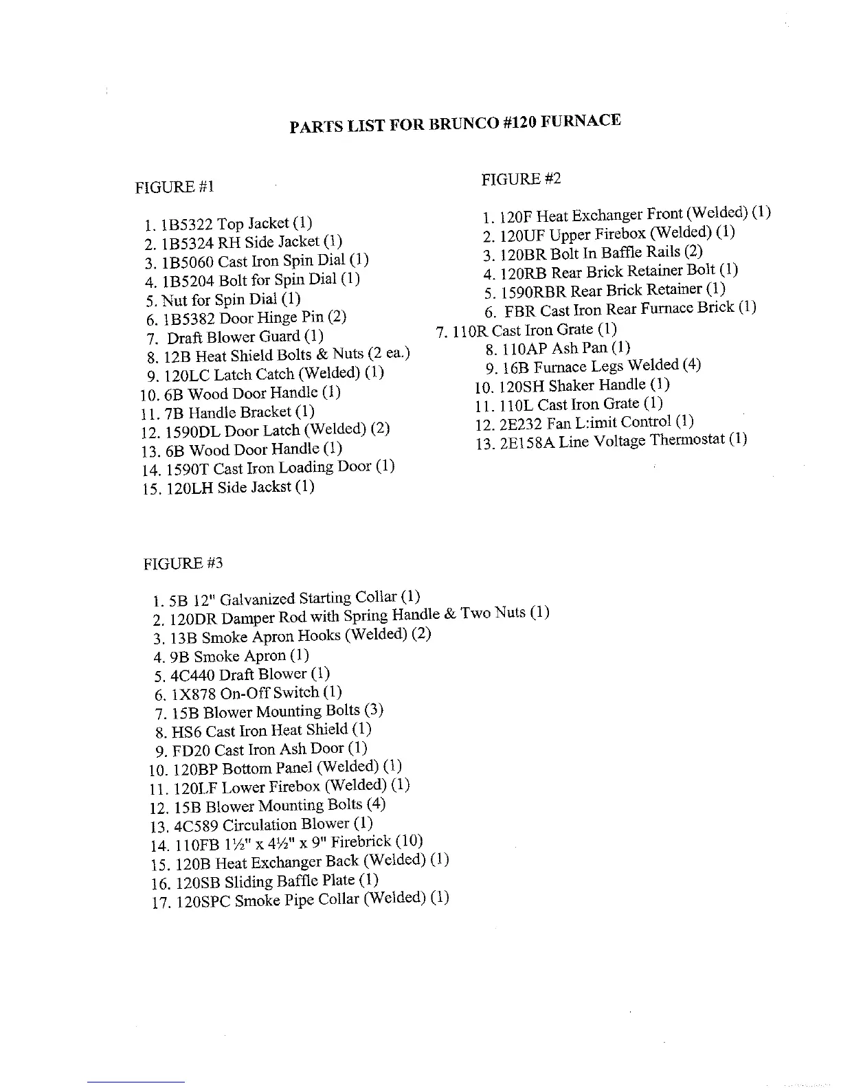 Brunco 120 - Parts List for Brunco 120 Furnace