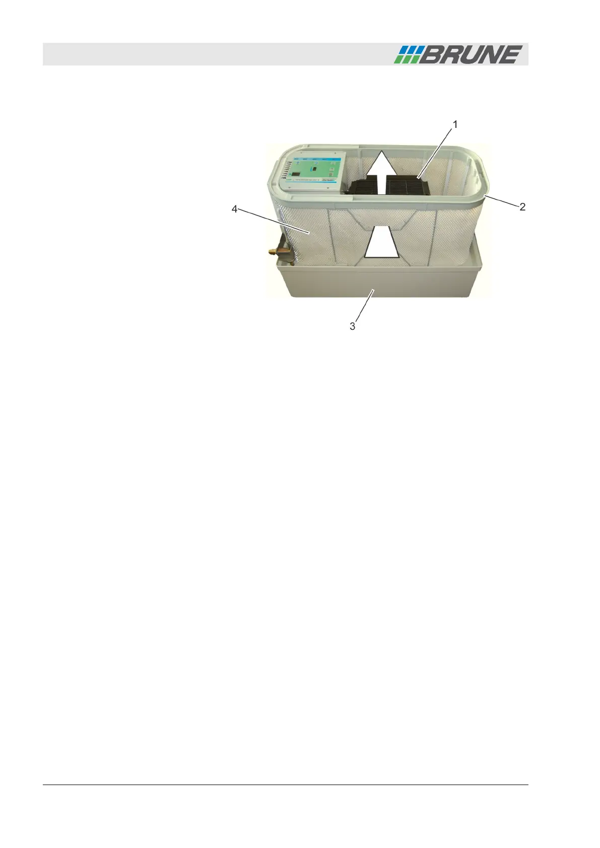 A fan (Fig. 6/1) inside the humidifier suctions the air in. The air