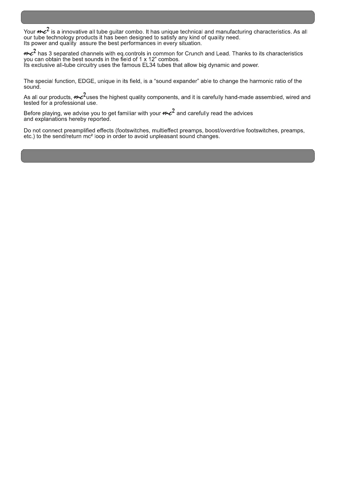 - ''All access'' foot pedal microprocessor controlled for channel switching, REVERB and EDGE function