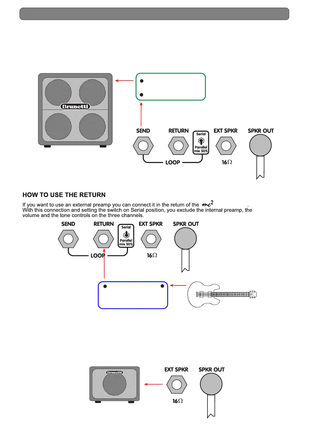Brunetti MC2 MASTER COMBO - Rear Panel External Connections; Connecting External Amps (Send); Connecting External Preamps (Return); External Speaker Connection