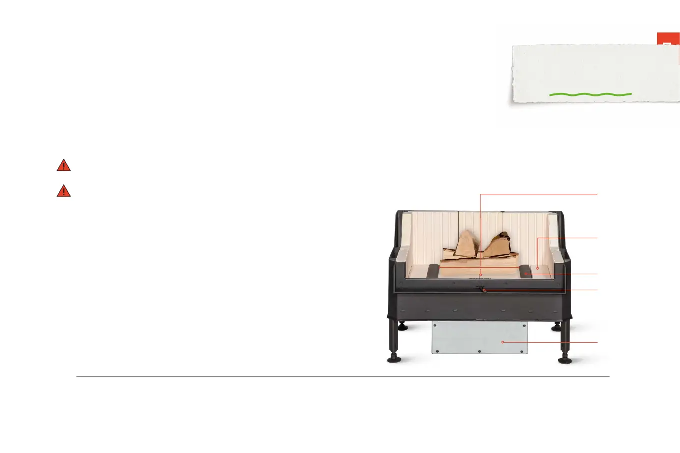 1 Combustion chamber floor with integrated firing bowl 2 Side floor stones 3 Side combustion air inlet (primary air) 4 Combustion air adjusting lever 5 Connection box