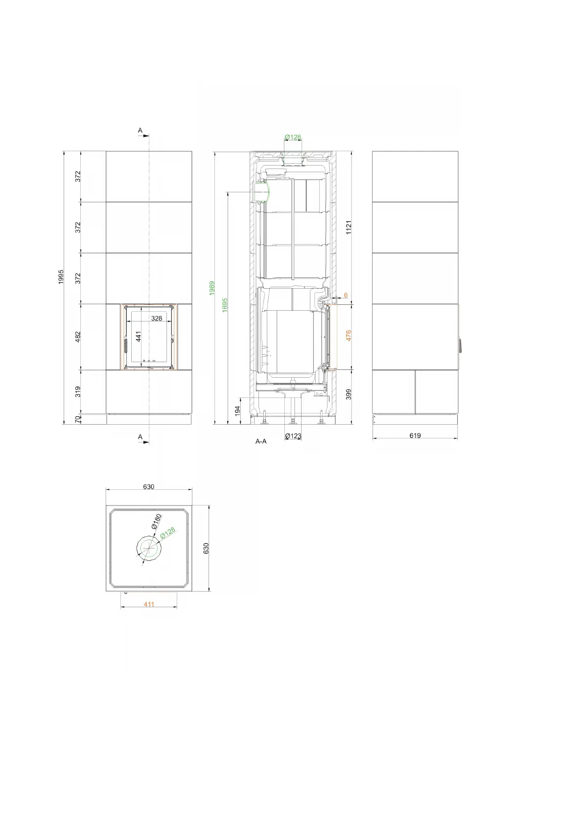 Frames/ flue gas outlet connection/ combustion air supply connection/ front variants/ support bearing are marked in col-