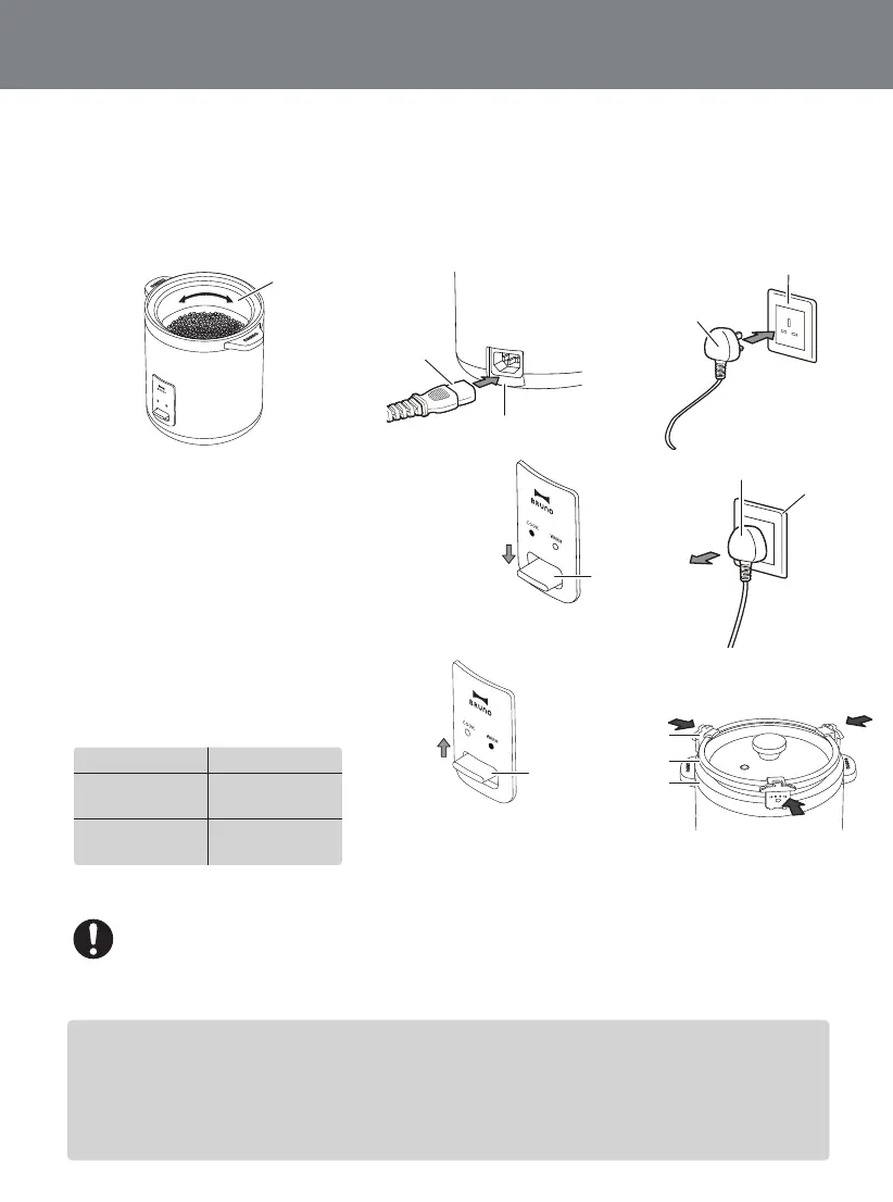 After placing the inner pot in the main body, turn it 2-3 times as indicated by the arrow.