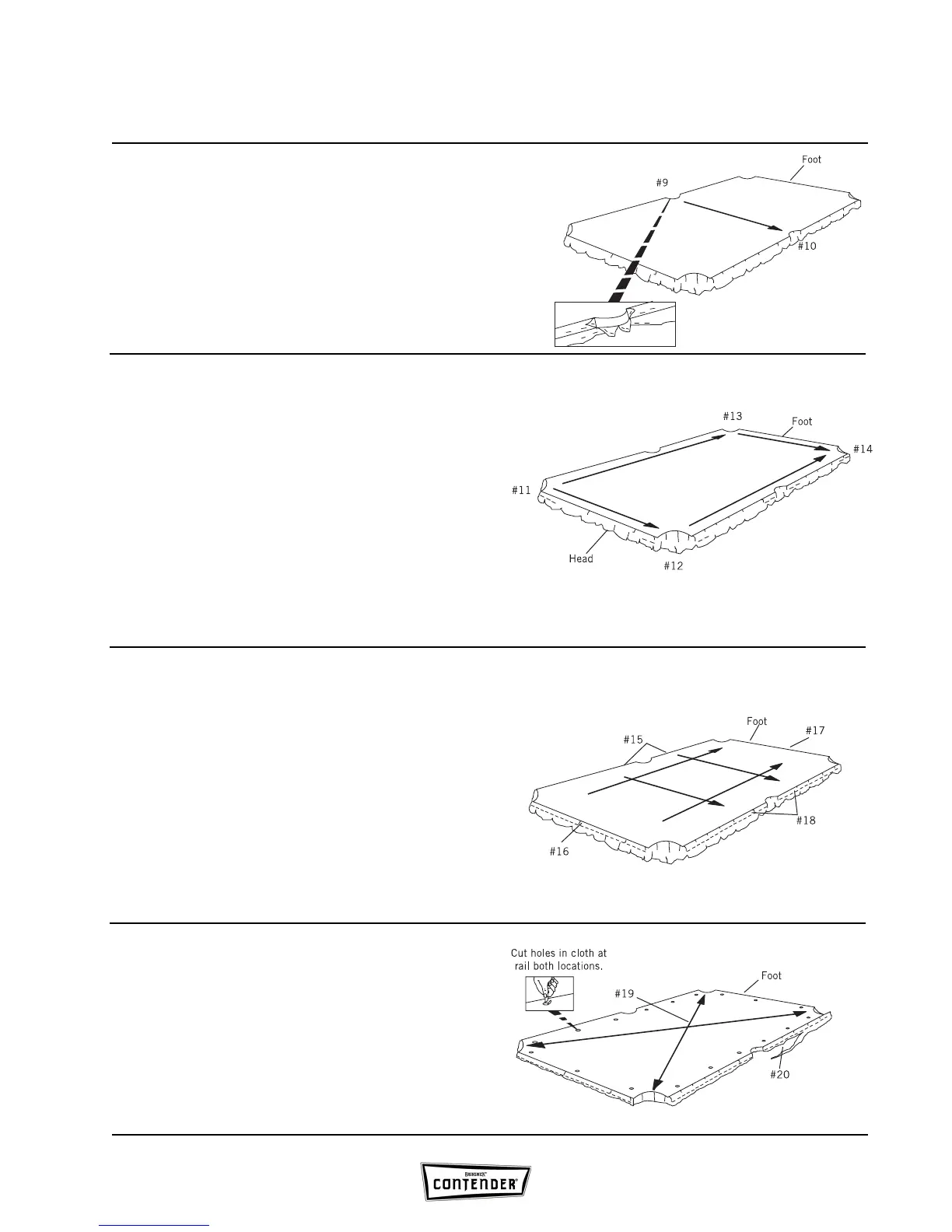 and one side rail. Pull cloth taut, and retack or restaple