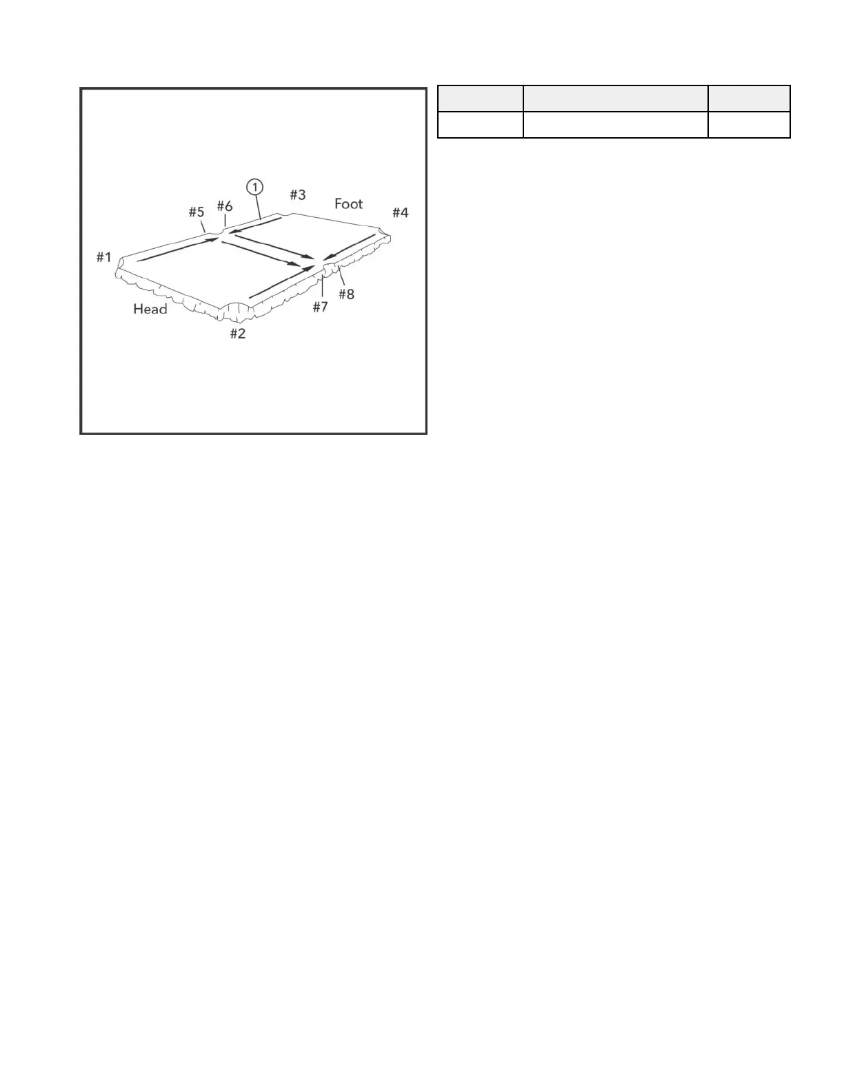 8. Stretching from #6 and toward the side pocket from #4 and tack or staple at #8.