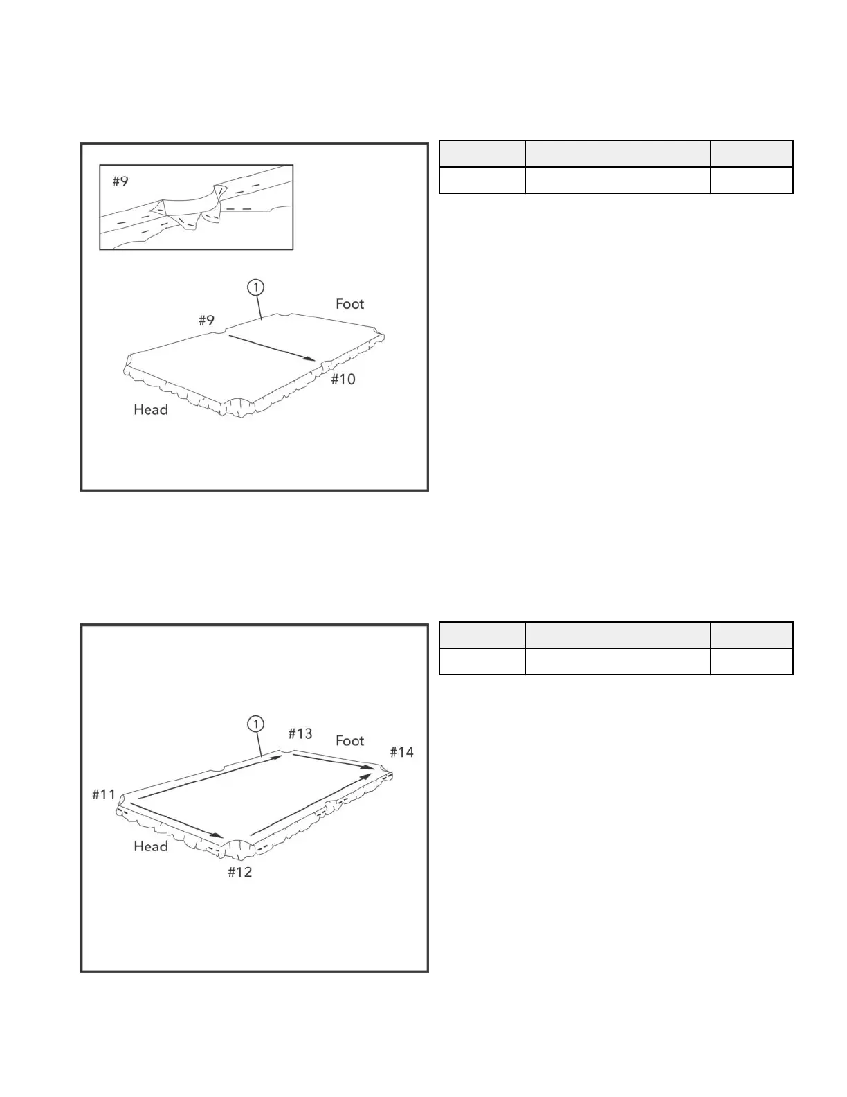 along the head end. Stretch the cloth firmly from location #11 to the foot end of the table and tack or staple at