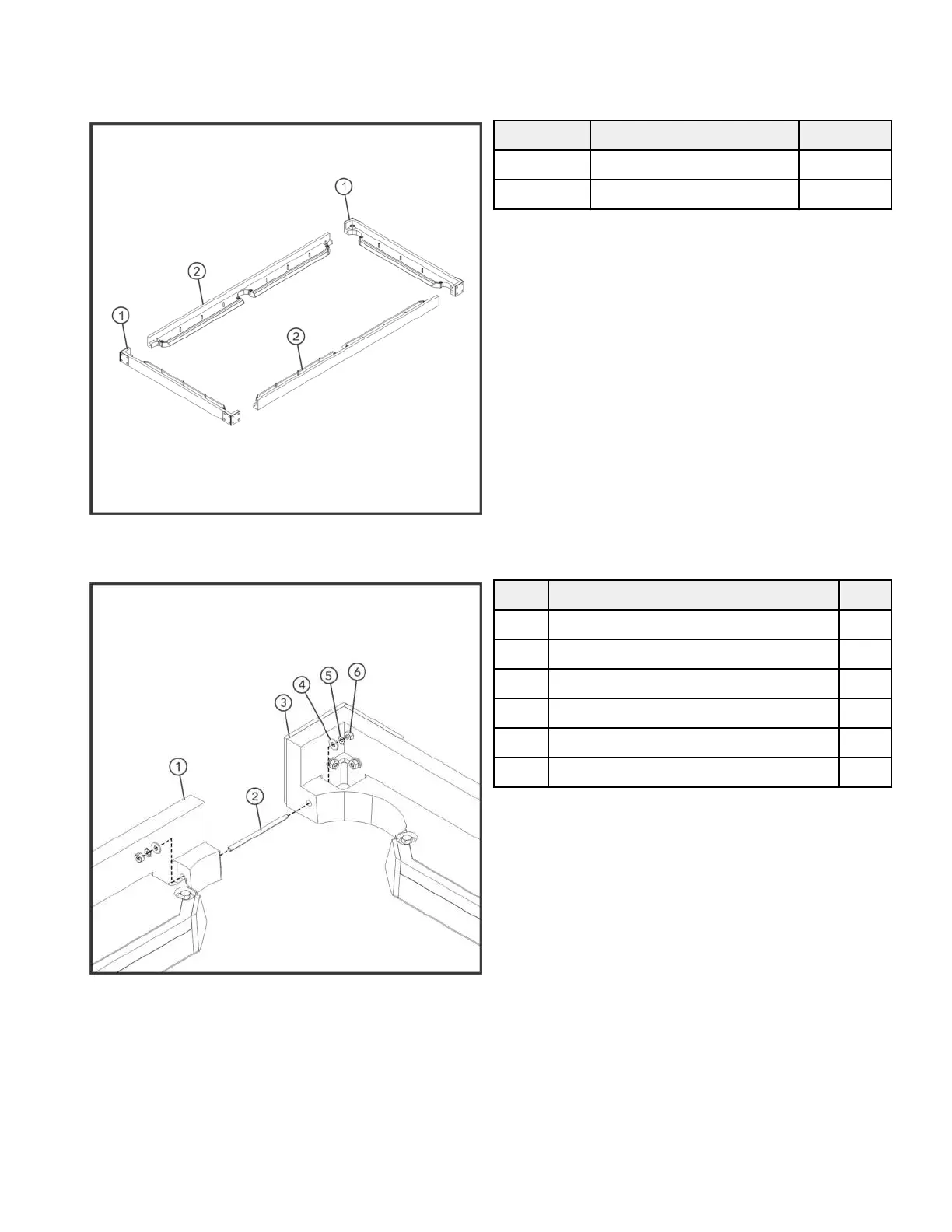2. Insert threaded rods into each side rail end. Slide the end rails into position aligned with the threaded end rod.