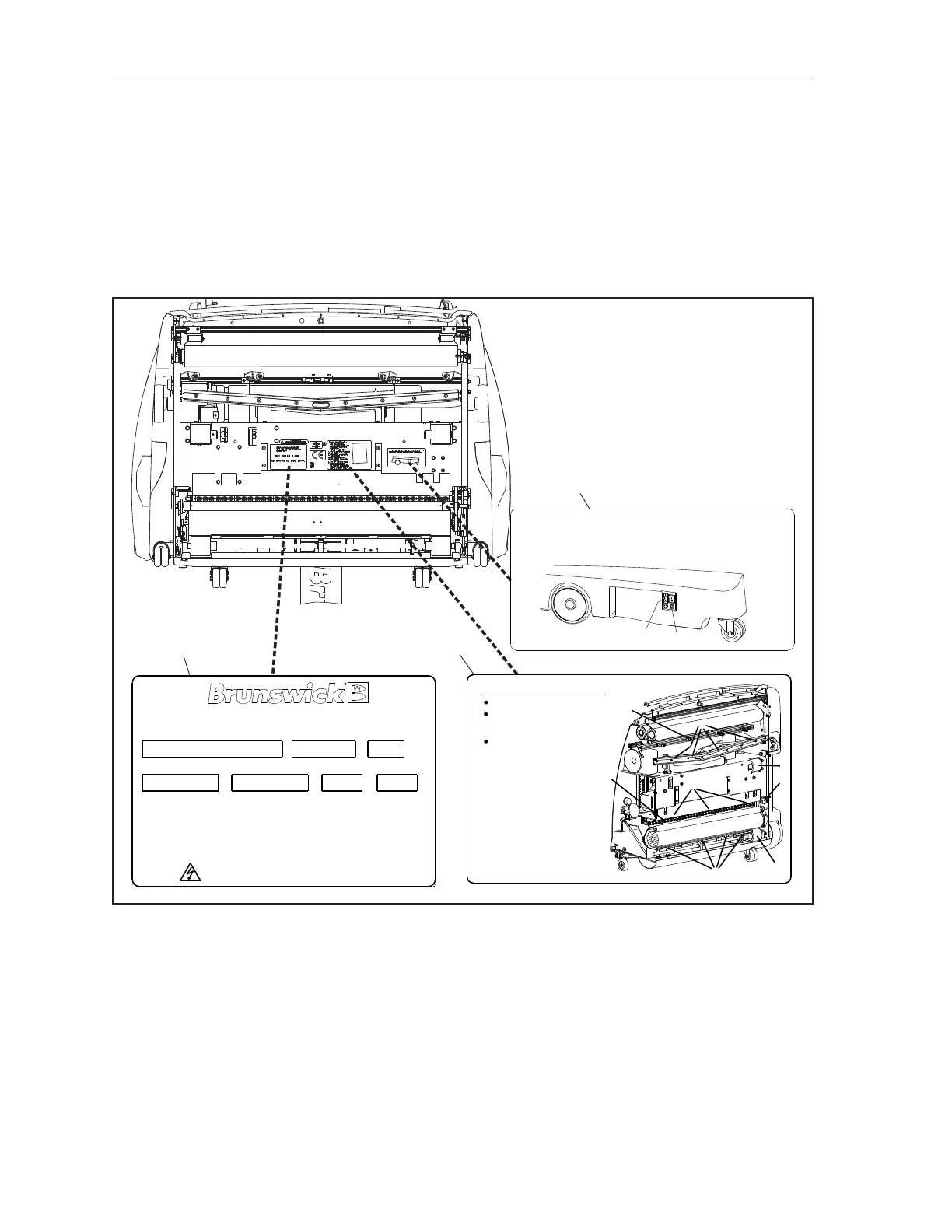 (reorder part number 14-100425-000) decals are located on the lane machine as shown in Figures
