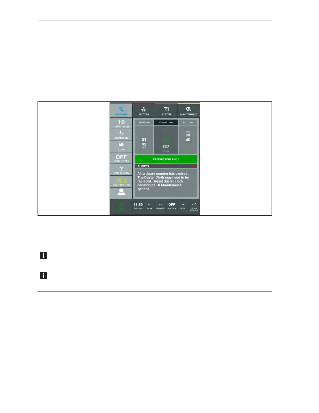 The Tablet maintains a count of the total number of lanes run as well as the amount of time the motors