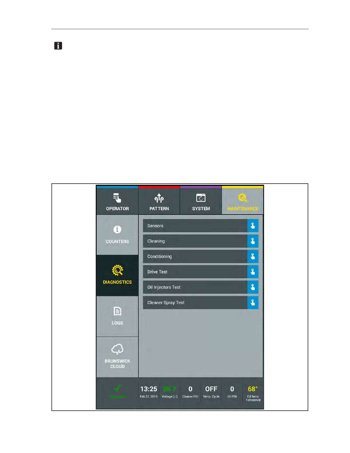 time. In the “Maintenance” menu you can enter the “Diagnostics” sub menu, of the lane machine, and