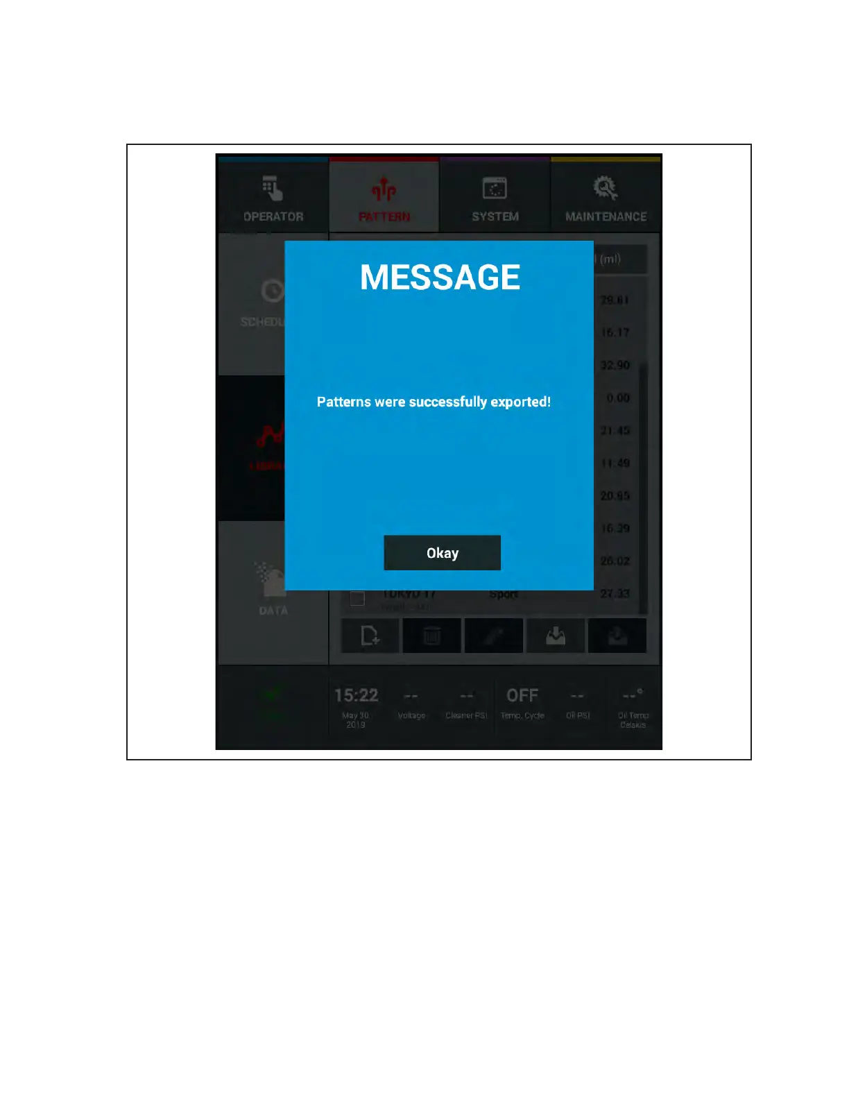 progress bar followed by a message that the pattern(s) were successfully exported. Refer to