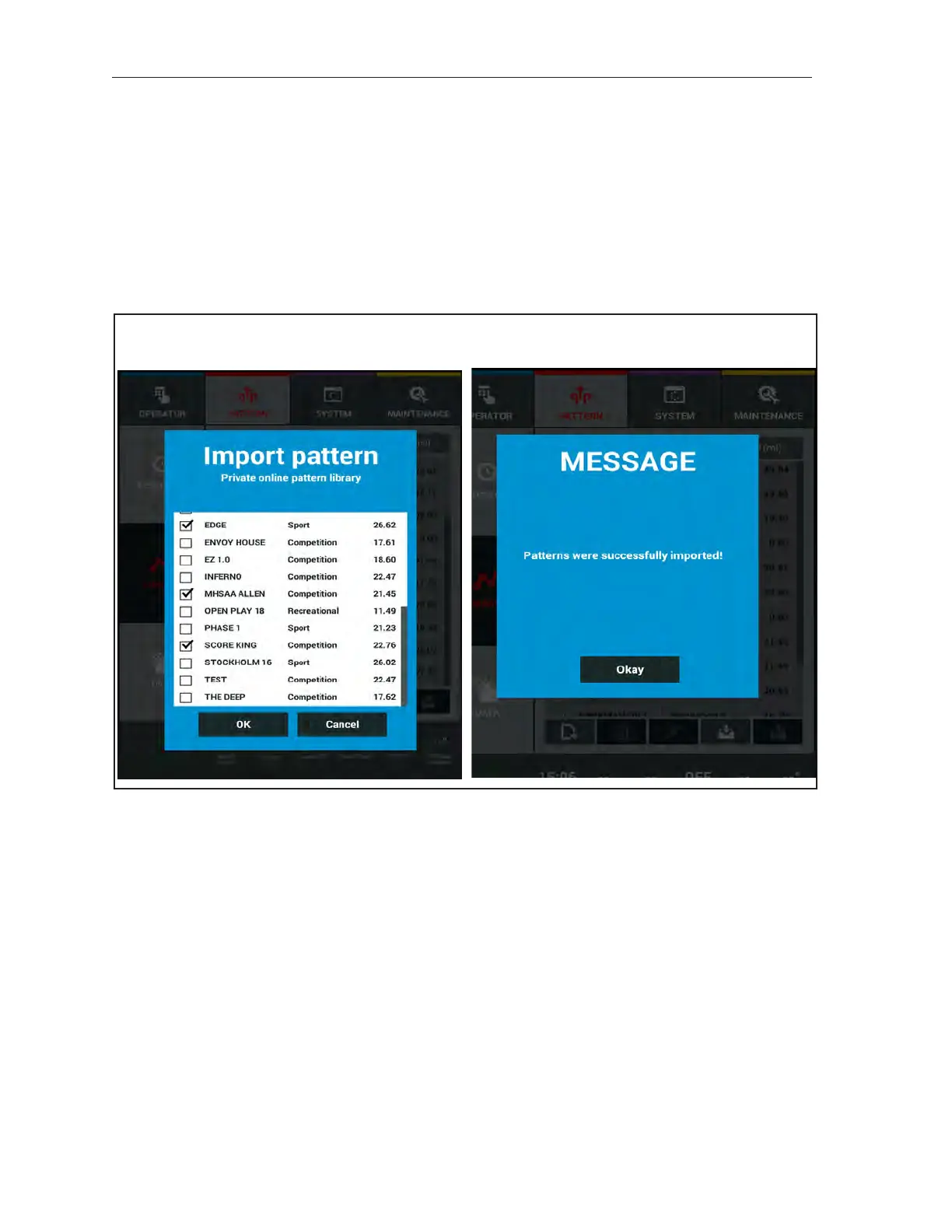 When all patterns are selected, press OK. Refer to Figure 8-11.