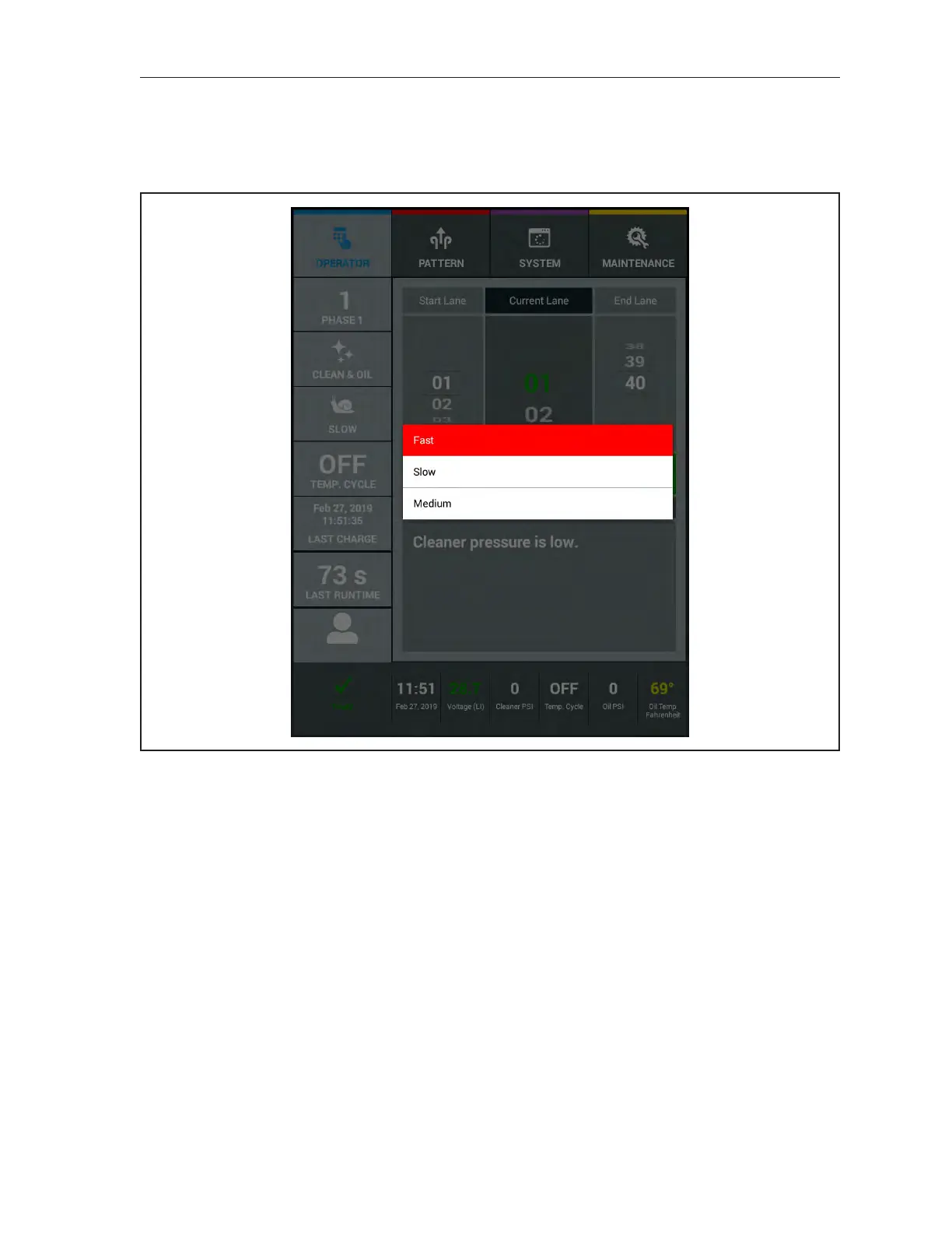 Allows you to see the “default” forward travel speed of the current conditioner pattern. There are three
