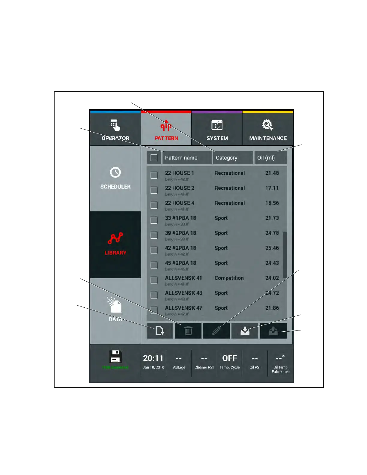 The rst screen in your Pattern Library is the Pattern list screen. This screen allows you to select a